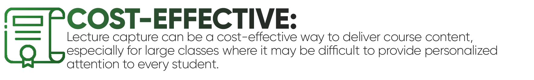 With an internet connection, this technology allows students to revisit the lecture content anytime, from anywhere. It can benefit students who may have missed a class or need to review a concept. Teachers can also use Lecture Capture to improve teaching methods and provide better learning outcomes for students.